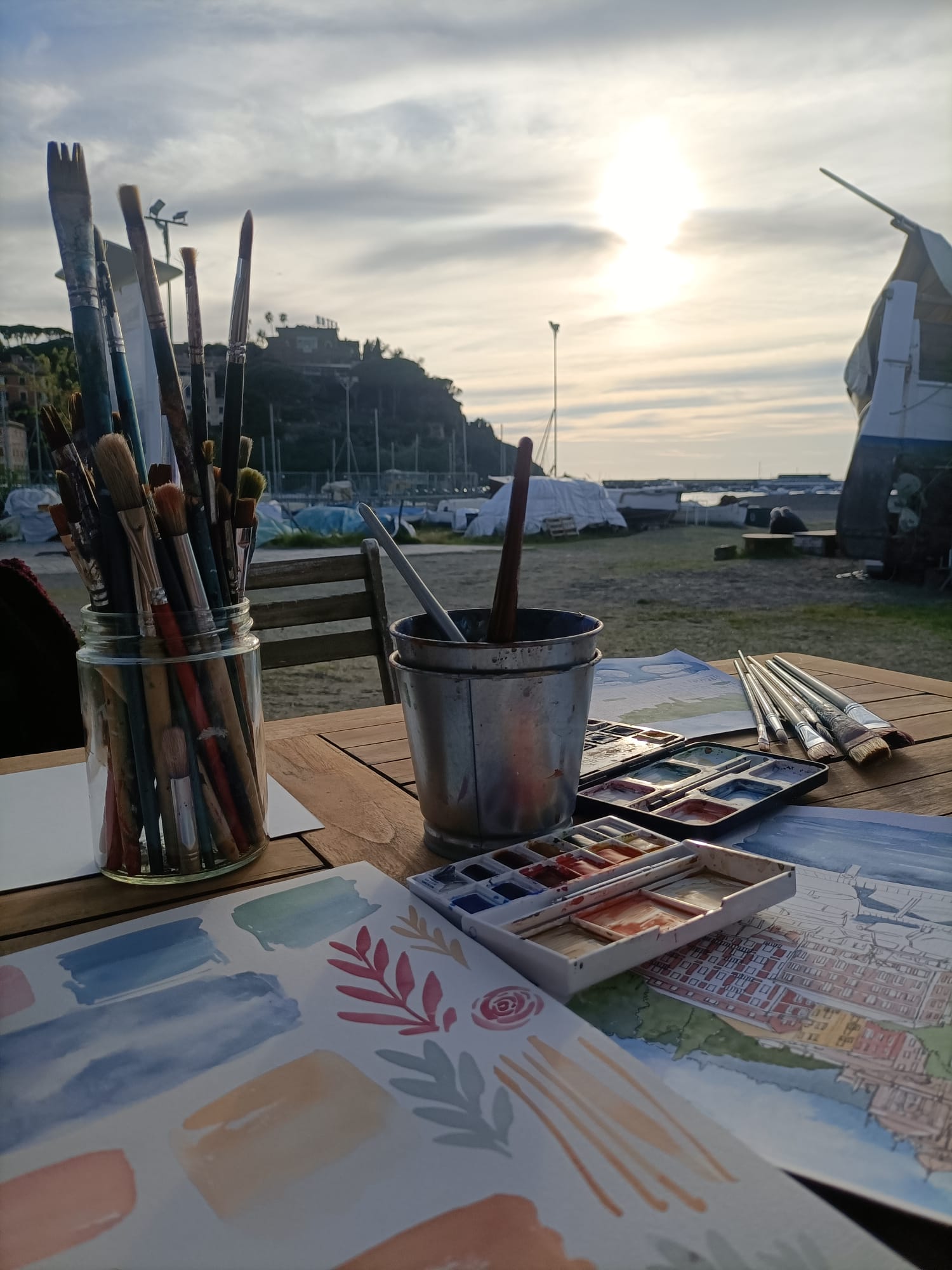Un calice in mano, il rumore del mare, la sesta al formaggio calda sul tavolo e un foglio che piano, piano prende colore. Ho immaginato delle serate così. A Sestri Levante, tra aperitivo e acquerelli, vi guiderò passo passo per dipingere un magico scorcio ligure (anche se partite da zero). Senza fretta, senza pressione, una pausa dalla quotidianità, per assaporare i profumi, i sapori e i colori delle splendide città liguri che ci circondano.