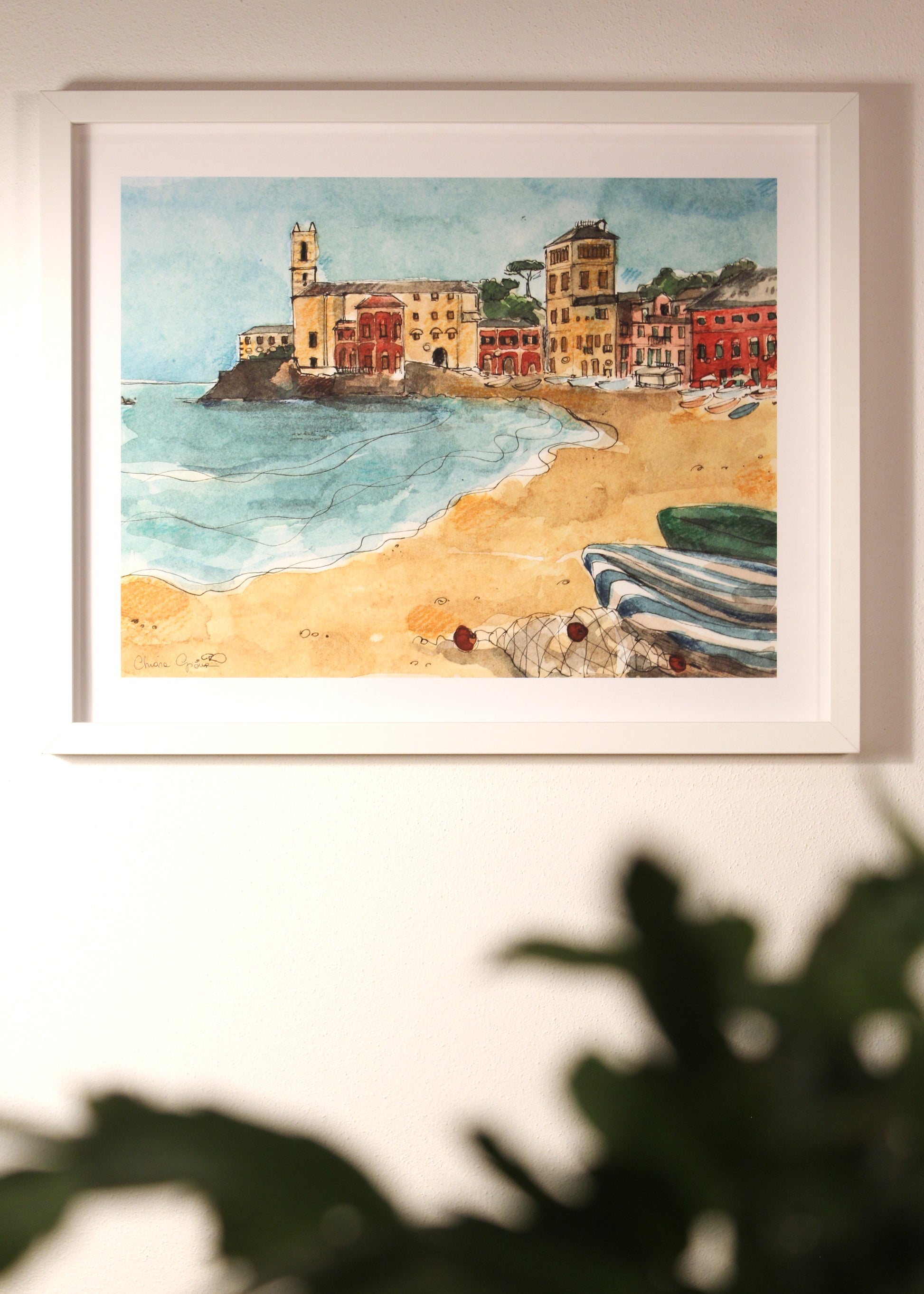 Una stampa artistica creata da una mia illustrazione originale ad acquerello e inchiostro, ispirata alla magica Baia del Silenzio di Sestri Levante, uno dei luoghi più suggestivi della Riviera Ligure.